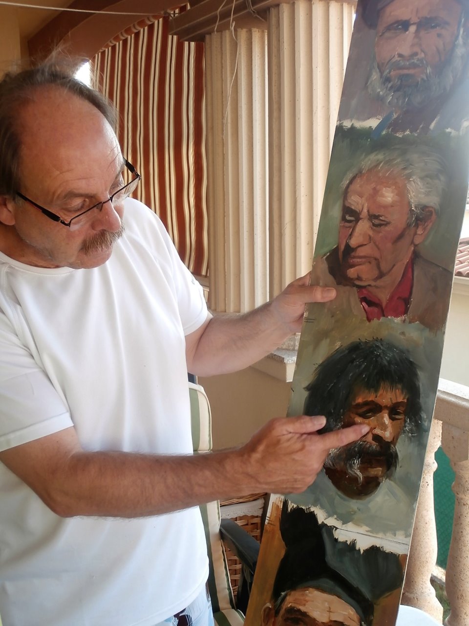 Es profesor y disfruta con todas las técnicas que transmite a sus alumnos. "Me llamaron los padres de los Maristas para dar clase a los adultos". Pasados 12 años sigue dando consejos a sus alumnos. "No hay que tener miedo, solo ganas de exponer" les dice.