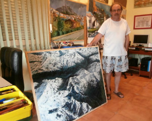 "Todo mi trabajo se puede ver por mi web que de momento estamos actualizando, pero a través de facebook se puede contactar conmigo. En otoño espero volar el dron por Los Ibores, por la Vera, etc. buscando perspectivas diferentes de lugares de nuestro entorno para plasmarlas después en el lienzo".
